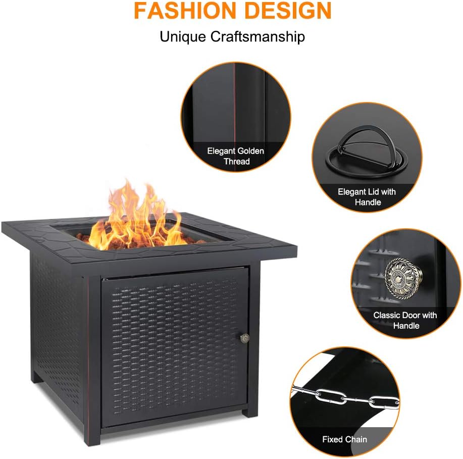 Amazon Com 28 Propane Fire Pit Table Gas Fire Pit With 50 000 Btu Ot Qomotop Auto Ignition Fire Pit Rattan Wicker Look Square Fire Table With Lid Etl Safety Certification Adjustable Flame Garden from m.media-amazon.com 40000 btus of heat making. Cover for side traditional fire pit table: Dimension of fire pit table: It has enough space to accommodate just a few utensils at the edges. Fire pit tables have gained popularity as more people are bringing indoor living spaces to the outdoors. These tables contain a real fire in the middle of them that can be used for warmth or decoration while the table around the fire can also be useful. To operate, the fire pit requires a 20 lb propane tank (not included). Magnesia oxide (mgo) cast stone top with metal frame.